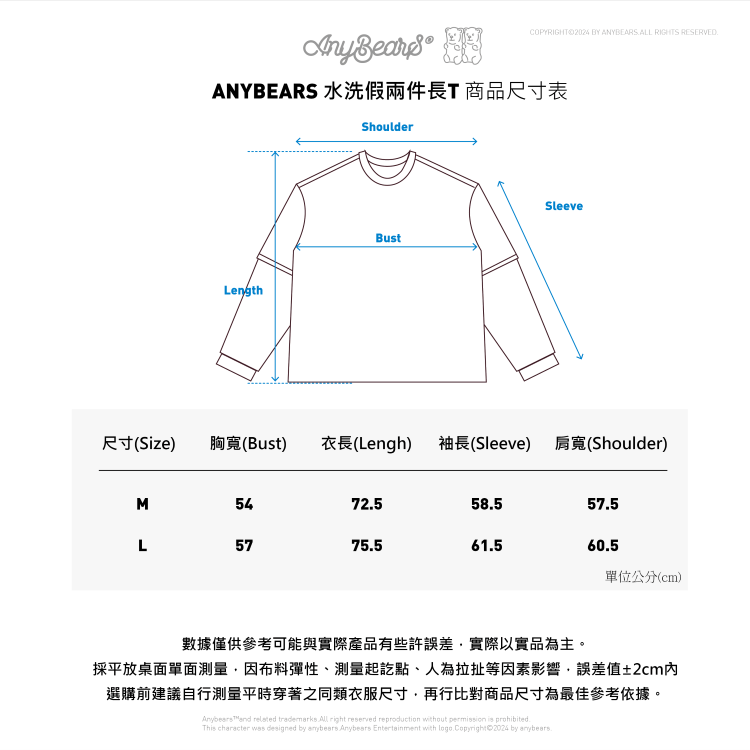 ANYBEARS® Darkness Love 黑暗之愛 假兩件水洗長T